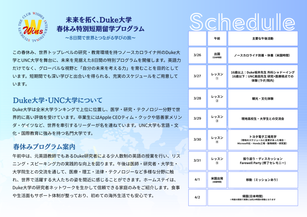 実施要綱はこちら。→ 短期海外留学プログラム実施要綱