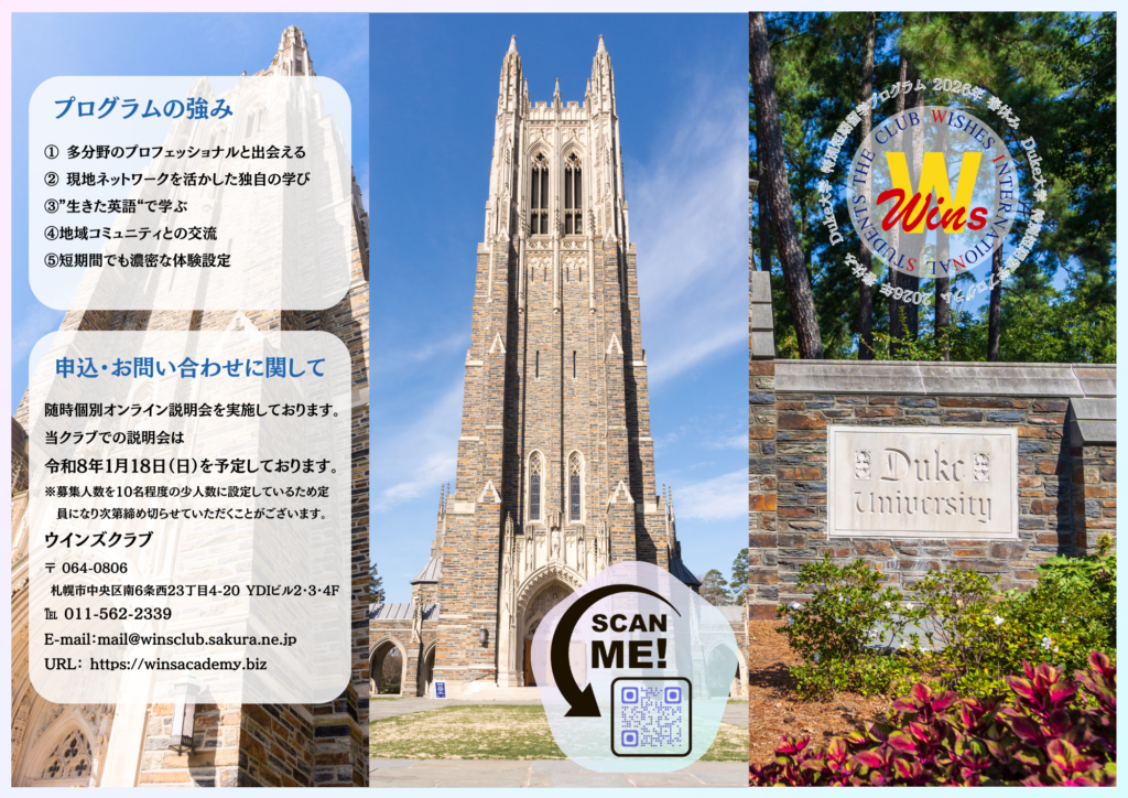 詳細はお問い合わせフォームをご利用ください。→ お問い合わせ|札幌市中央区 円山の塾・英会話ならウインズクラブ